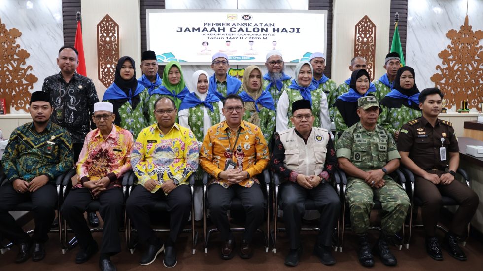 KUALA KURUN,JURNALISWARGA.ID – Pemerintah Kabupaten Gunung Mas resmi melepas 15 jamaah calon haji tahun 1447 Hijriah/2026 Masehi yang siap diberangkatkan ke Tanah Suci. Prosesi pelepasan berlangsung di Aula Lantai I Kantor Bupati Gunung Mas, Kamis (23/4/2026).