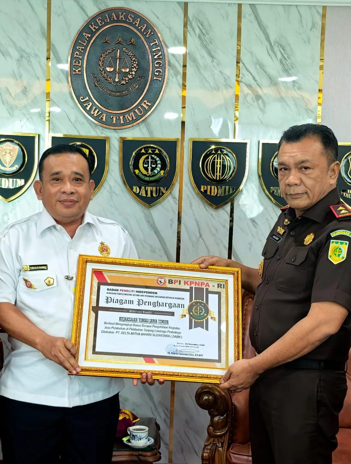 Penyerahan penghargaan tersebut dilakukan dalam rangkaian road show BPI KPNPA RI di Jawa Timur dan berlangsung di Ruang Kerja Kepala Kejaksaan Tinggi Jawa Timur.