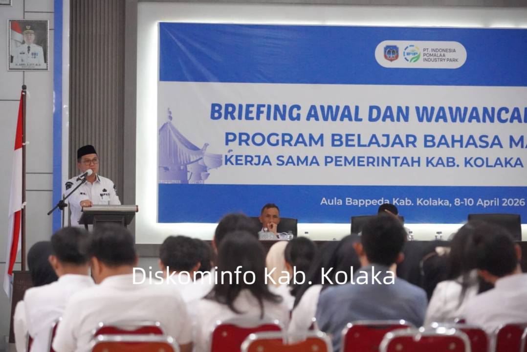 Kolaka, Jurnaliswarga.idSekda Kab. Kolaka menyampaikan laporan pelaksanaan kegiatan pada acara briefing dan wawancara tahap I Program Belajar Bahasa Mandarin kerja sama dengan PT. Indonesia Pomalaa Industrial Park (IPIP), yang dilaksanakan di Aula Bappeda Kab. Kolaka. Rabu, (08/04)