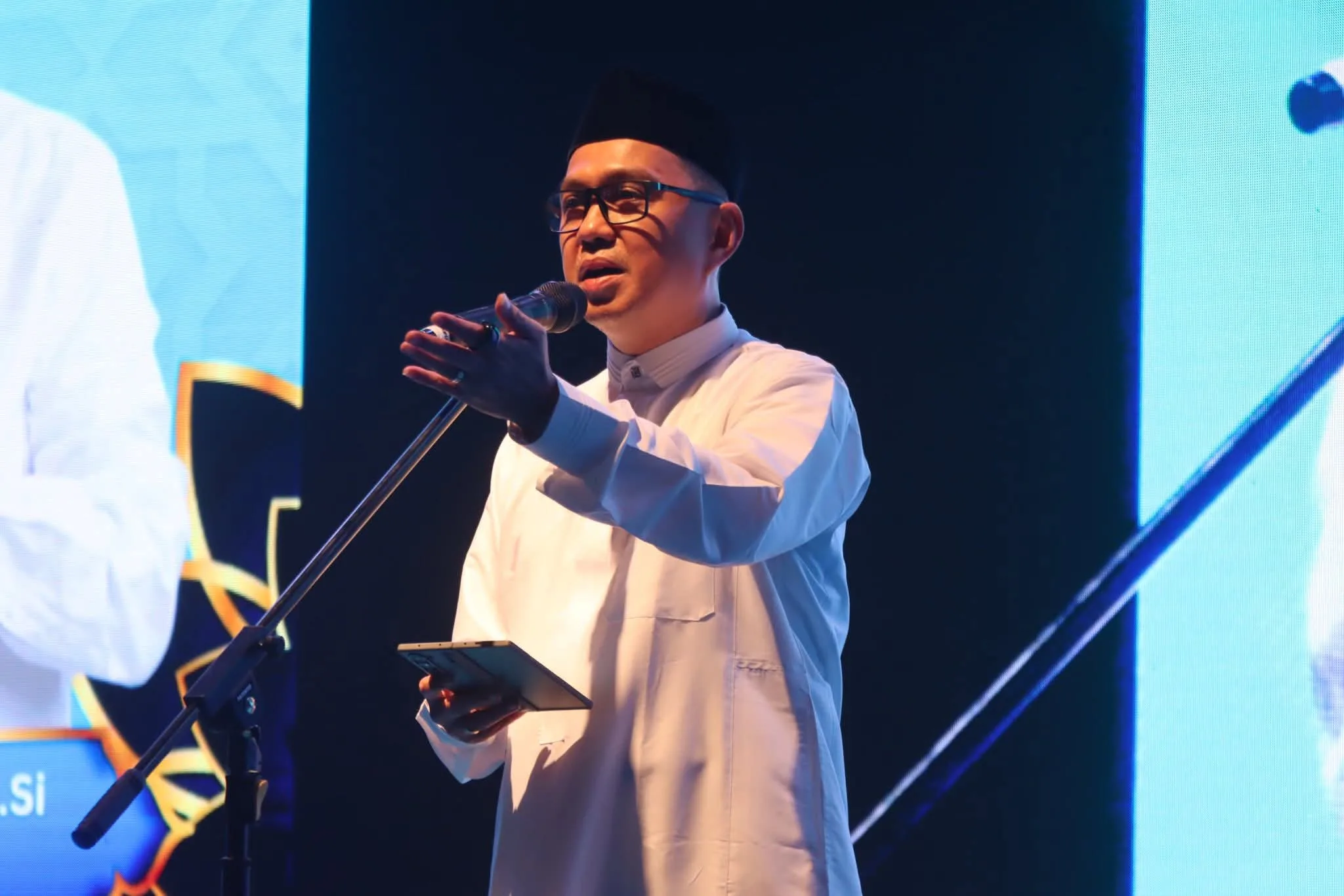 Kolaka, Jurnaliswarga.id – Dalam rangka menyemarakkan Tahun Baru Islam 1447 Hijriah, Bupati Kolaka H. Amri, S.STP., M.Si memimpin langsung kegiatan dzikir akbar di Taman Kota Kolaka, Sabtu (12/07). Acara ini berlangsung khidmat dan meriah, terutama saat penyanyi religi papan atas, Haddad Alwi, tampil membawakan lagu-lagu sholawat seperti “Cinta Rasul” yang membuat ribuan warga Kolaka larut dalam lantunan syair Islami.