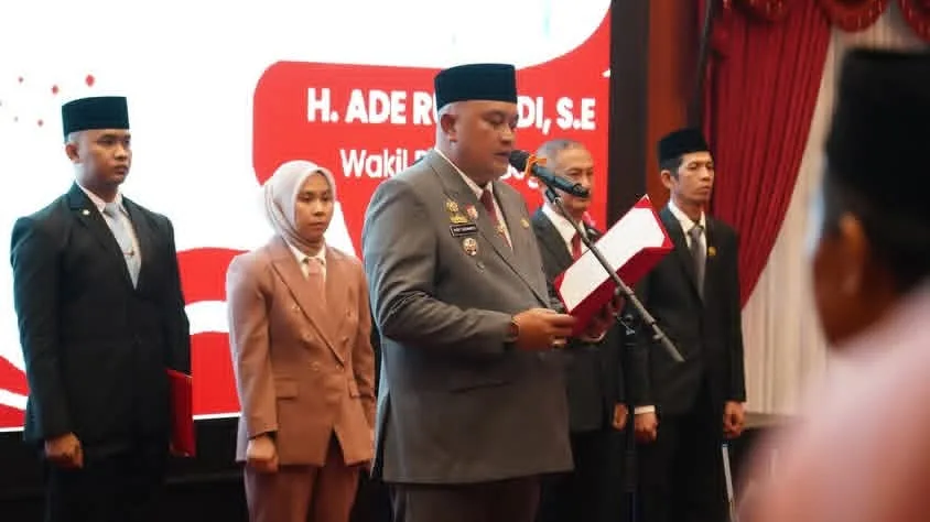 Cibinong, JURNALISWARGA.ID – Bupati Bogor, Rudy Susmanto, melantik 24 pejabat di lingkungan Pemerintah Kabupaten Bogor melalui pengambilan sumpah/janji Jabatan Struktural dan Jabatan Fungsional, yang berlangsung di aula soekarno hatta pendopo bupati, pada Jumat (13/2/26).