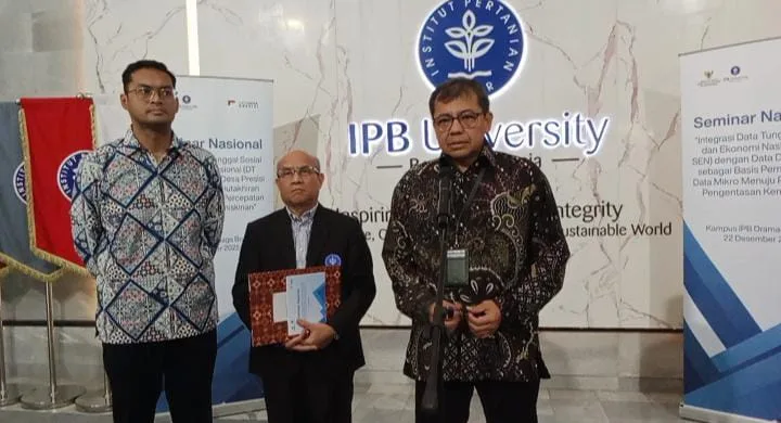 Bogor, Jurnaliswarga.id — Institut Pertanian Bogor (IPB) mengambil peran strategis dalam upaya percepatan pengentasan kemiskinan nasional melalui pengembangan dan integrasi Data Desa Presisi (DDP) dengan Data Tunggal Sosial dan Ekonomis Nasional (DTSEN). Komitmen tersebut ditegaskan dalam Seminar Nasional yang diselenggarakan bersama Badan Percepatan Pengentasan Kemiskinan (BP Taskin) berlangsung di Kampus IPB Gedung Andi Hakim Nasution (AHN). Senin (22/12/2025)