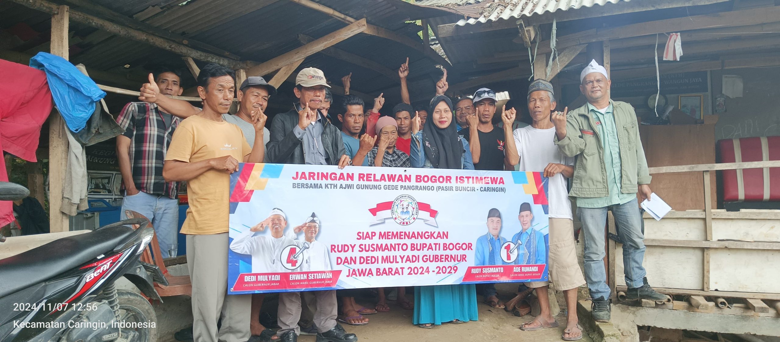 Ratusan masyarakat yang ada di kp mekar Jaya secara sukarela datang memberikan dukungan melalui Jaringan Relawan Bogor Istimewa (JRBI) kepada Paslon Bupati Bogor Nomor Urut 1 Rudy Susmanto-Ade Ruhandi serta Paslon Gubernur Jawa Barat Dedi Mulyadi dengan alasan bahwa Paslon yang di dukung diyakini dapat memberikan kepedulian dan perhatian pada masyarakat yang ada di lereng gunung gede pangrango Caringin dimana terdapat 600 KK yang bermukim di sekitar RW 01 Desa Pasir Buncir Caringin.