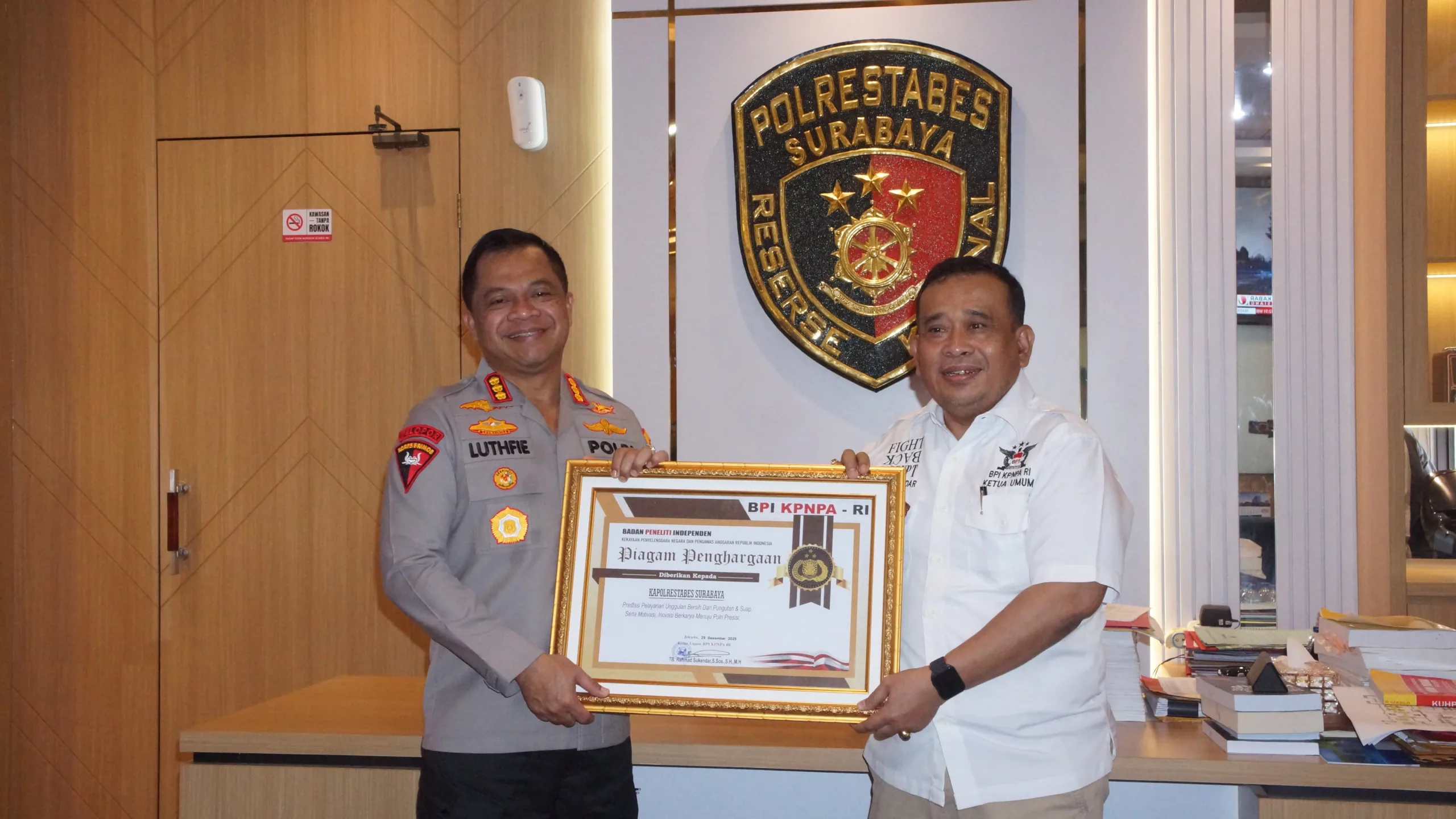 Sebagai bentuk pengakuan atas kinerja dan komitmen dalam penegakan hukum serta pelayanan kepada masyarakat, Polrestabes Surabaya menerima penghargaan BPI Award dari BPIKPNPARI.