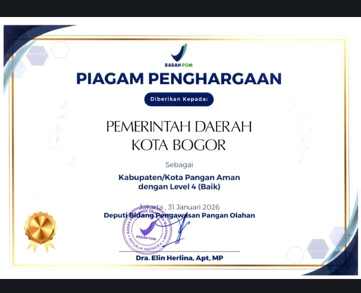 Kepala Dinas Kesehatan Kota Bogor, Erna Nuraena, menyampaikan bahwa capaian ini merupakan bentuk apresiasi atas komitmen pemerintah daerah bersama seluruh pemangku kepentingan dalam menjaga sistem pangan yang aman, bermutu, dan layak konsumsi.