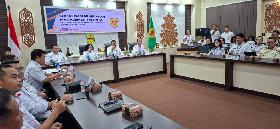 KUALA KURUN, JURNALISWARGA.ID – Pemerintah Kabupaten Gunung Mas terus memperkuat kualitas Aparatur Sipil Negara (ASN) melalui penerapan manajemen talenta. Hal ini ditandai dengan kegiatan sosialisasi yang digelar di Aula Kantor Bupati Gunung Mas, Rabu (8/4/2026).