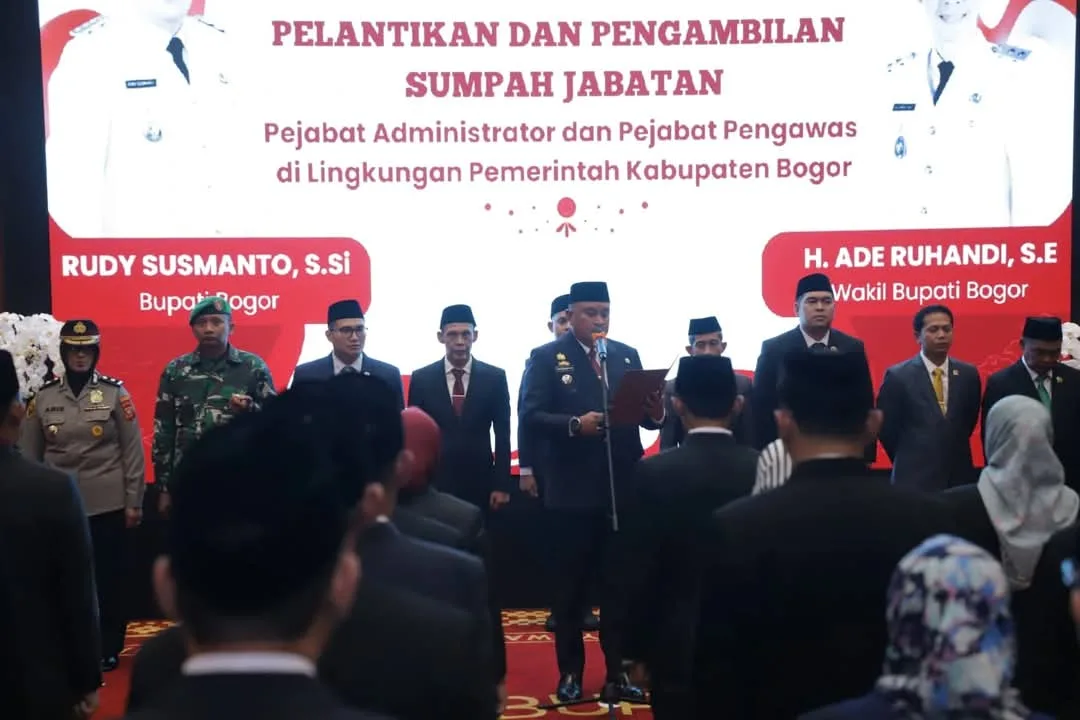 BOGOR, JURNALISWARGA.ID – Pemerintah Kabupaten Bogor kembali melakukan langkah strategis dalam memperkuat tata kelola pemerintahan. Sebanyak 45 pejabat eselon III dan IV resmi dilantik oleh Bupati Bogor, Rudy Susmantodalam acara yang berlangsung di Pendopo Bupati Bogor, Kamis malam (19/6/2025).